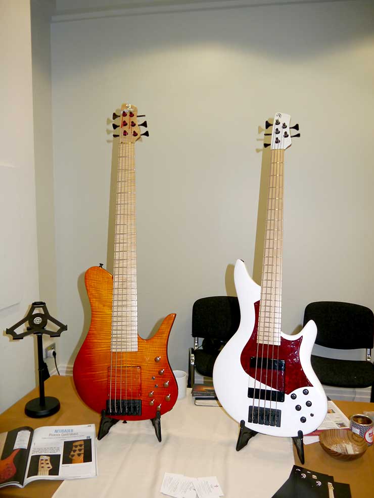 MARLEAUX Die Bässe von Gerald Marleaux tummeln sich auf dem englischen Markt recht erfolgreich. Einmal mehr gab es eine traumhafte Auswahl zu bewundern – so wie es in Frankfurt einst der Fall war. Zwei fröhliche Gesichter! Gerald Marleaux (rechts) neben US-Legende Bobby Vega. Achtung! Am 28. bis 30. September geht bei Marleaux Bass Guitars im schönen Harz wieder das Tiefgang Bass Camp über die Bühne! Bobby Vega ist auch dabei – und es sind nur noch wenige Rest-Tickets verfügbar!
