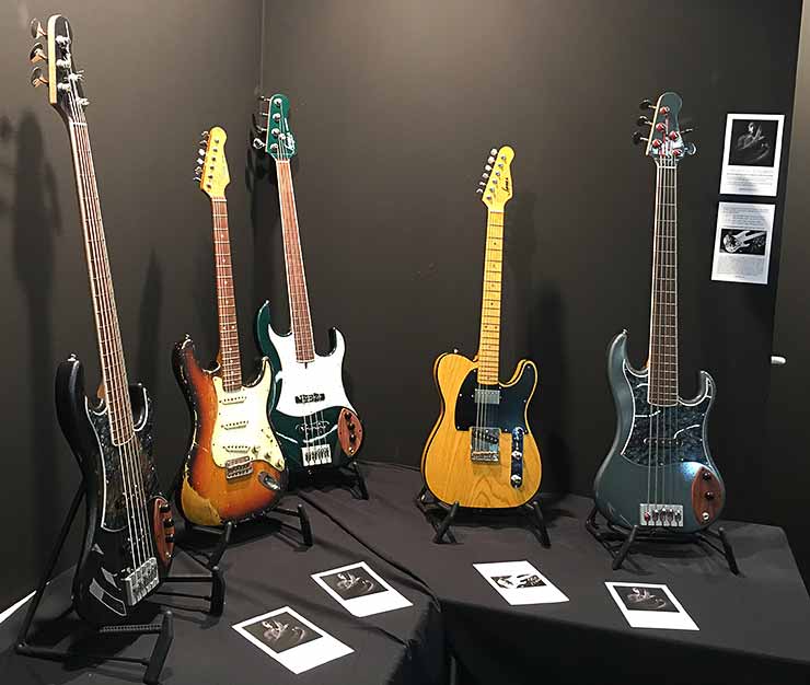 JONES MUSICAL INSTRUMENTS Stones-Bassist Darryl Jones präsentierte in Frankfurt von ihm entworfene und vom erfahrenen Gitarrenbauer John Carruthers (Fender, Ibanez,G&L) gefertigte Instrumente. Jedes davon wird auf Bestellung gebaut, Customwünsche sind also möglich. Die beiden Bass-Grundmodelle sind der Chatham (P-Type, 1 Pickup) und Gresham (J-Type, 2 Pickups). Infos: