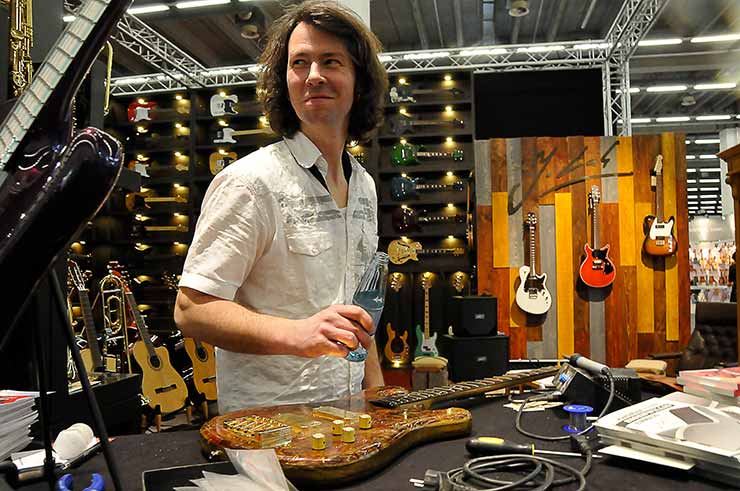MOSCATO Moscato aus Frankreich waren ein echter Lichtblick – und zudem der einzige (!) Stand in Frankfurt, auf dem ausschließlich Bässe zu sehen waren. Man sieht es schon an der opulenten Optik, die Instrumente gehören nicht nur in Frankreich zur absoluten Oberliga. Jean- Luc Moscato verwendet ausschließlich edelste Hölzer, um seine traumhaften Instrumente Wirklichkeit werden zu lassen, die sich zudem durch ein eigenständiges Design auszeichnen. Soundlich gehen die Bässe sehr in die HiFi-Richtung. Info: