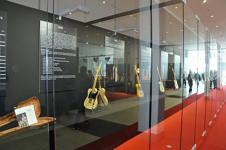 FENDER TELECASTER Die Geschichte der modernen elektrischen (Brett-)Gitarre begann bekanntlich im Jahr 1950 als Leo Fender und George Fullerton die „Esquire“ (ein Tonabnehmer) und bald darauf die „Broadcaster“-Gitarre (zwei PUs) präsentierten, die kurze Zeit später aufgrund von Namensstreitigkeiten „Telecaster“ heißen sollte und als diese in die Geschichte einging. Thomas Weilbier – seines Zeichens Chef vom No.1 Guitar Center in Hamburg – hatte sich die Mühe gemacht und zahlreiche bemerkenswerte und wertvolle Teles aufgefahren – ein echtes Highlight auf der Messe! Wir sind gespannt, ob sich dieser Showdown im nächsten Jahr mit den Bässen wiederholt. Info: