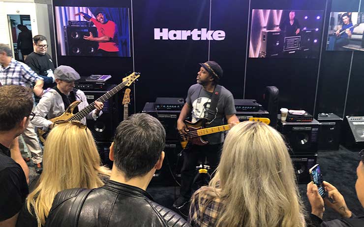 Victor Wooten rockt am Stand von Hartke das Haus! Seinen Fodera hat er für die Performance offensichtlich solange an einen Kumpel abgegeben.