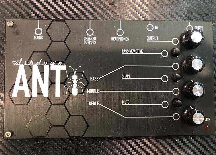 Wo kommt nur dieser Ameisenhaufen her? Natürlich von Ashdown, denn der lässt es kräftig kribbeln. Der Ashdown Ant versteht sich als Amp für das Pedal-Board. Er liefert 200 Watt an gängige 4 oder 8 Ohm-Boxen – ein überaus praktische Erfindung. Und wahrscheinlich bald Standard.