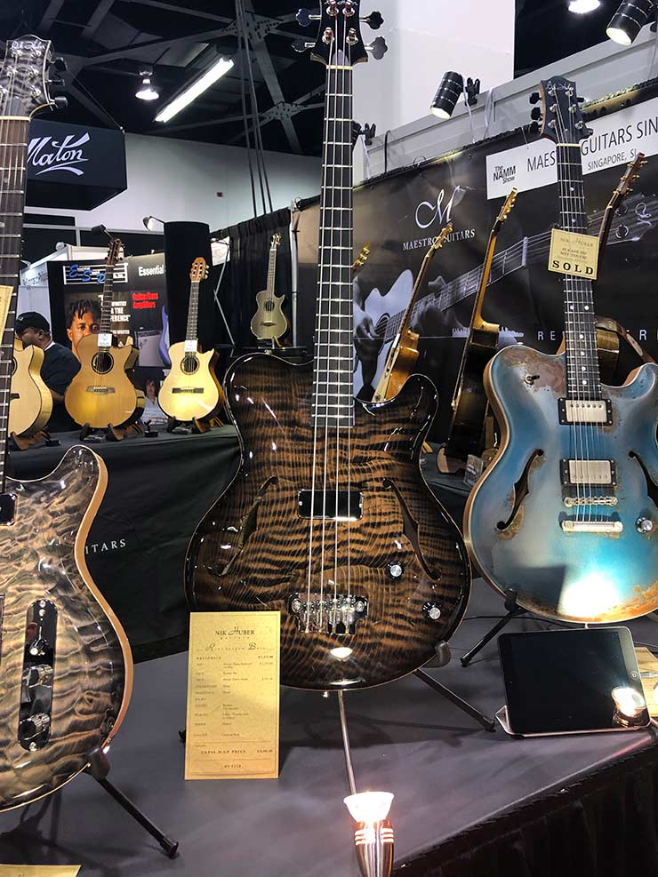 Nik Huber. Aus deutschen Landen hatte es Nik Huber nach Kalifornien verschlagen. Mit dem „Rietbergen Bass“ setzt Nik Huber neue Mäßstäbe, denn es handelt sich um einen superb klingenen halbakustischen Bass im Vintage-Look, der eine dankbare Alternative zum Gibson EB-2 darstellt. Der Rietbergen Bass ist auf gutem Weg, ein Klassiker zu werden.