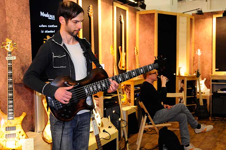 Armin Metz gab auf dem Stand von Marleaux eine Kostprobe seiner enormen Fähigkeiten im Bereich Solobass. Besucht mal seine Website, da gibt es ein paar nette Clips zu sehen: www.arminmetz.com