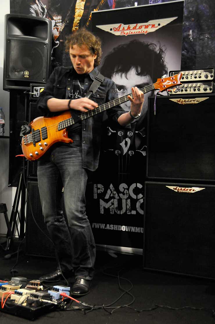 Pascal Mulot gilt als Crème de la Crème-Bassist im befreundeten Frankreich. Jean Michel Jarre ist einer der Brötchengeber des sympathischen Franzosen, der seinen Vigier Arpege auf dem Stand von Ashdown virtuos bediente und mit einer bestechenden Slap- Technik glänzte.