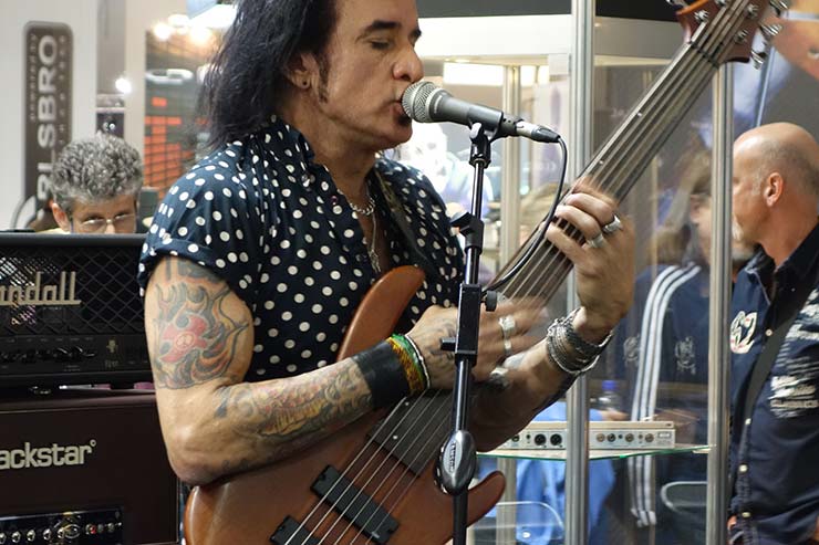 Er kann nicht nur Hart&Heftig, sondern auch jazzig-virtuos den bundlosen Sechssaiter bedienen – und dabei noch ganz entspannt singen! Entsprechend umlagert waren die Vorführungen von Marco Mendoza für ESP/LTD.