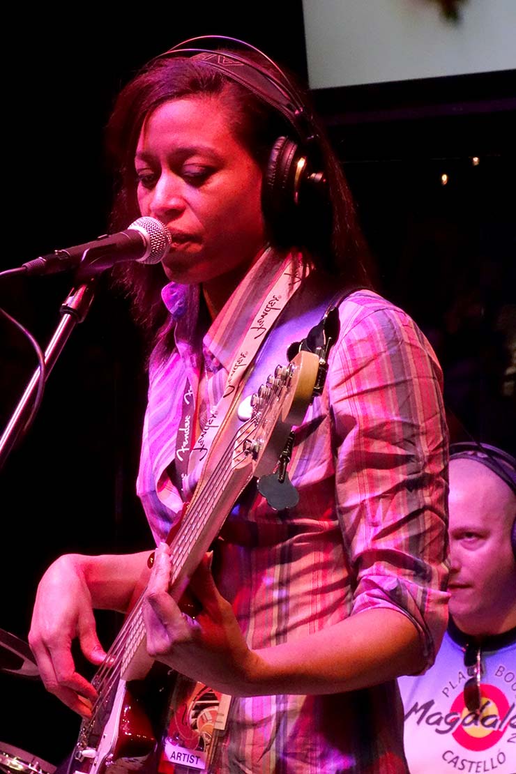 Am Elixir-Stand gab sich Yolanda Charles mit ihrem Fender Dimension Bass die Ehre. Eine echte Lady am Bass!