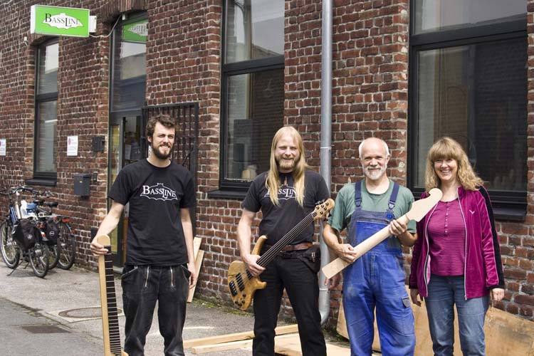 BASSLINE FEIERT in diesem Jahr sein 20jähriges Firmenjubiläum. Aus diesem Grund laden die Krefelder Bassbauer am 8.Juni von 12 bis 16 Uhr zu einem Tag der offenen Tür in ihrer Werkstatt und zu einem Workshop von Jazzvirtuose Patric Siewert ein. Ab 19.30 Uhr gibt es dann Livemusik in der „Kulturrampe“ auf dem Krefelder Großmarkt mit den selbst gebauten Instrumenten. Neben einer „open session“ für alle BassLiner und die, die es sein möchten, haben u.a. die Anke Johannsen Band, das Horst Hansen Trio, Minor Cabinet und die BassLine Allstar Band kleine Sets angekündigt. Das Foto zeigt das Team von BassLine: (v.l.n.r.) Philipp Maike, Fabian Wild, Rüdiger und Martina Ziesemann.