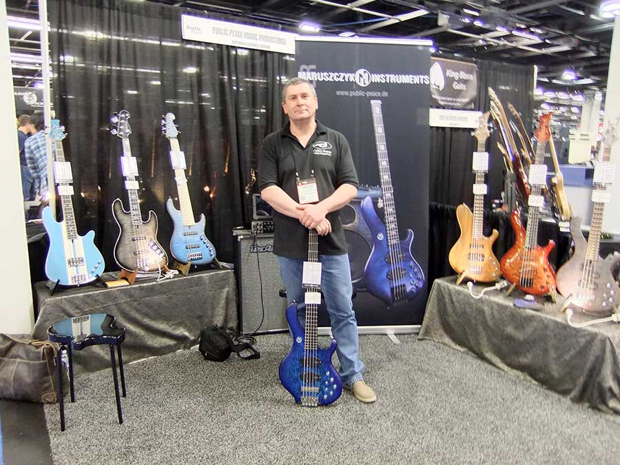 Maruszcyck Von Aldenhoven bei Aachen nach Anaheim bei Los Angeles – schon zum zweiten Mal stellte Adrian Kuban-Maruszcyck seine überaus erfolgreichen Bässe vor, der er unter seinem Namen in Polen herstellen läßt. Info: