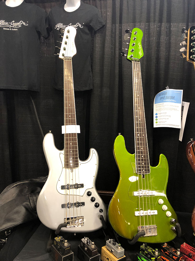 ALLEVA-COPPOLOBei Alleva-Coppolo konnte man einmal mehr viele schöne Custom Made Bässe bewundern. Diese waren teilweise handbemalt oder von einem ehemaligen Fender-Mitarbeiter originalgetreu lackiert. Links seht ihr Jimmy Coppolo und rechts BASS PROFESSOR-Neuzugang Klaus Alberti.